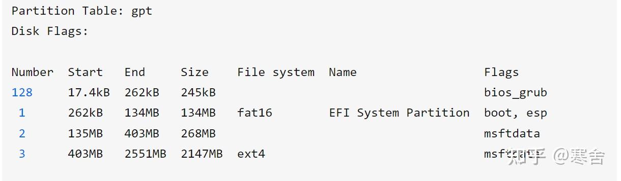 执行完上述命令后,你会到你有三个分区(此处我没有截图,从网上找了一个,大概如下:)